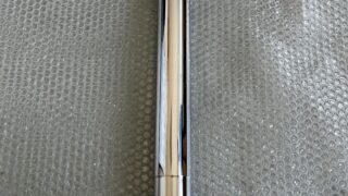 バイクパーツメッキ加工履歴 【曲がり修正&ラップ仕上げ】 インナーチューブの曲がり修正&ラップ仕上げ。。福岡県 インナーチューブの両端をVブロックに乗せ 振れを確認。曲がり修正をする際は、 Vブロックとインナーチューブの間に銅板を 敷き、またプレスで押す部分にも銅板を敷き ます。曲がりが大きい場合は一気に0.05以内 まで伸ばします。0.05以内からは微調整しな がら曲がりを伸ばします。 最終的な振れは±0.01 最終仕上げはラップ仕上げまで 2025.10.03 バイクパーツメッキ加工履歴